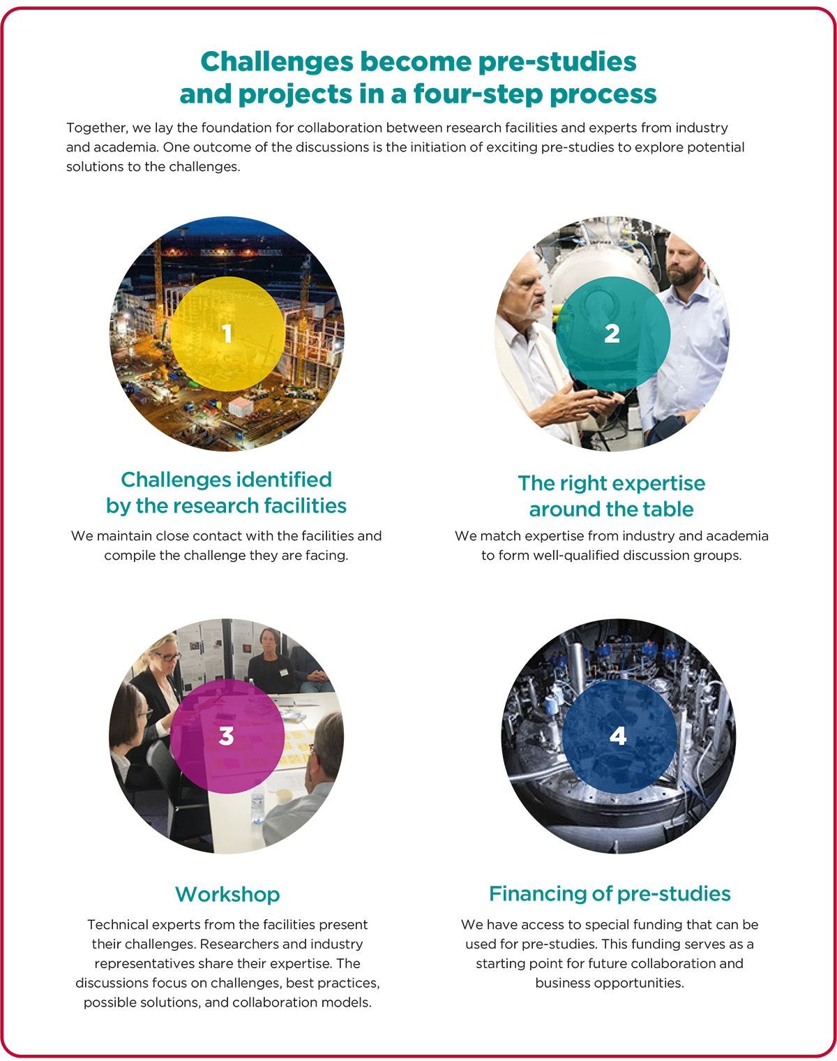 At AIMday, Big Science facilities submit their challenges. Once the challenges are published on the AIMday webpage, registration opens for industry and academia. On the day, expert teams explore the challenges in focused workshops. Choose the questions that match your expertise, and take an active part in the discussions! Your expertise is needed!