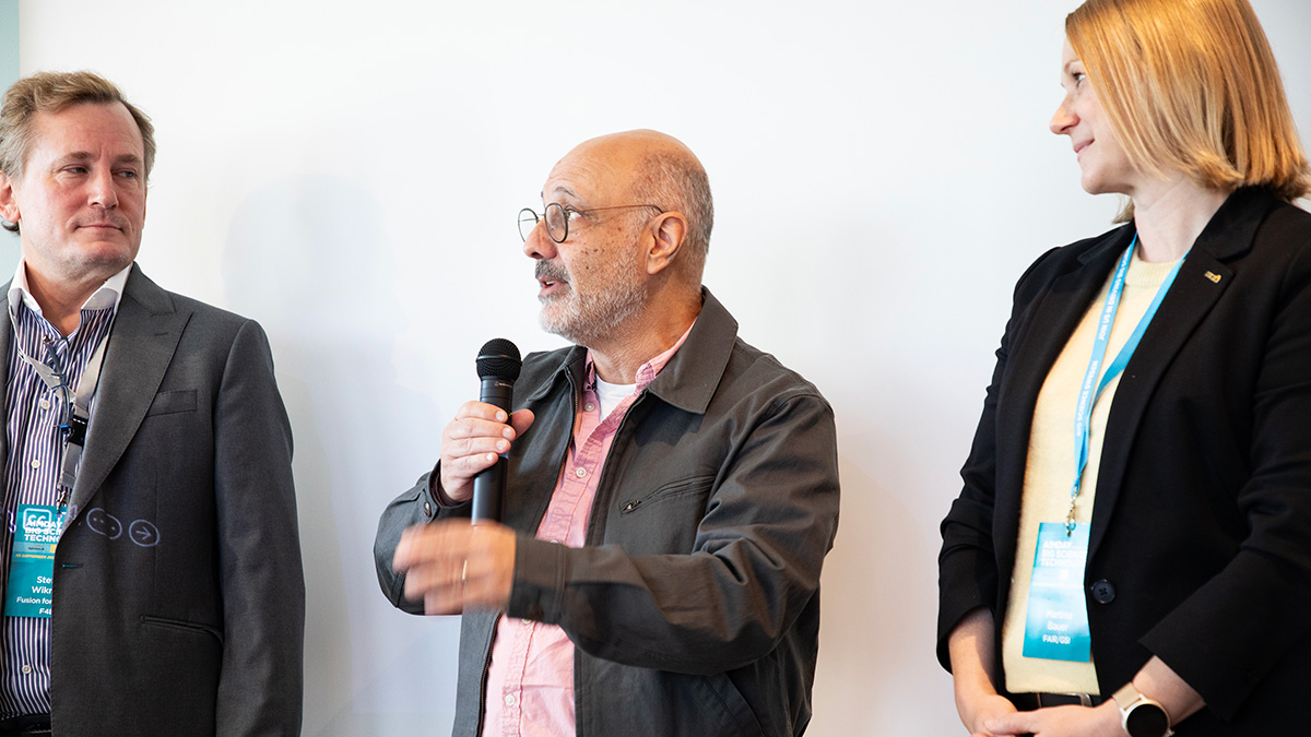Fredrik Engelmark (Big Science Sweden) in conversation with Richard Jakobsson (CERN) and Stefan Wikman (F4E).