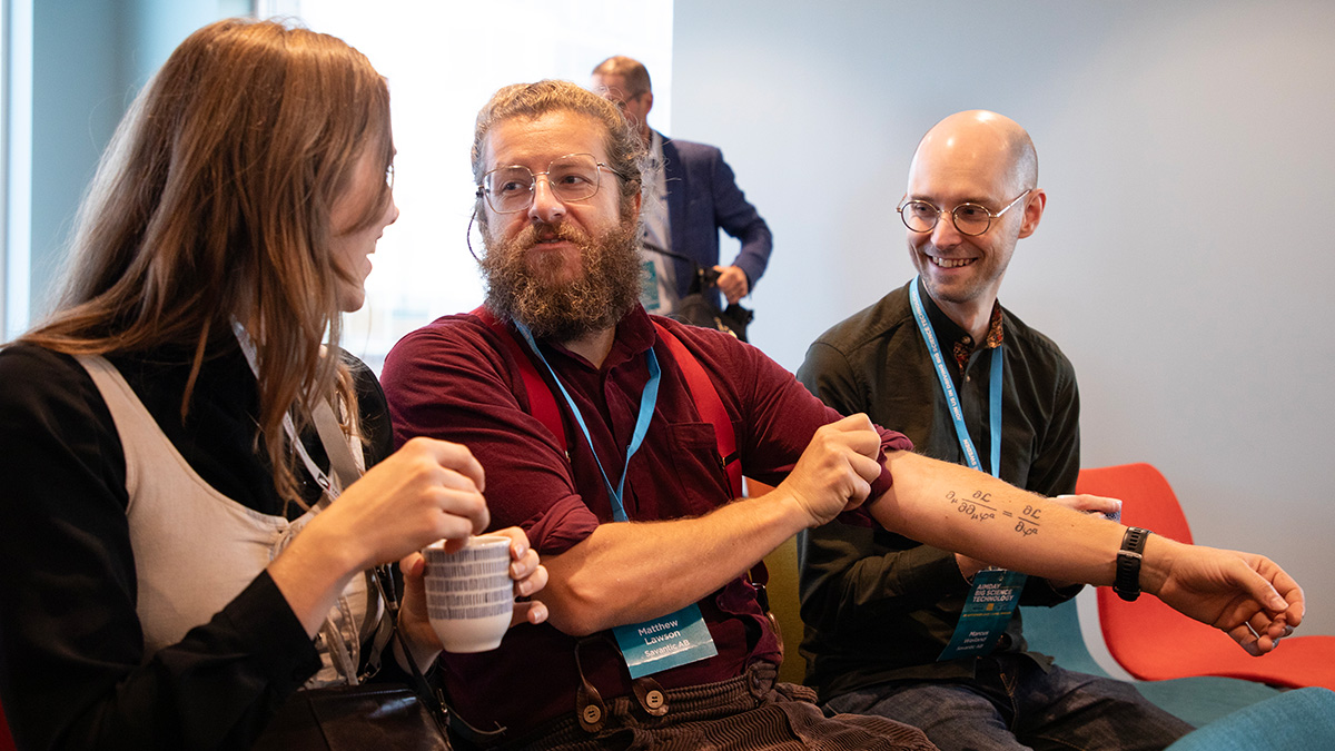 Matthew Lawson (Savantic) showing his dedication to Big Science to Katrine Hjort (BigScience.dk), with Marcus Weiland in the background.