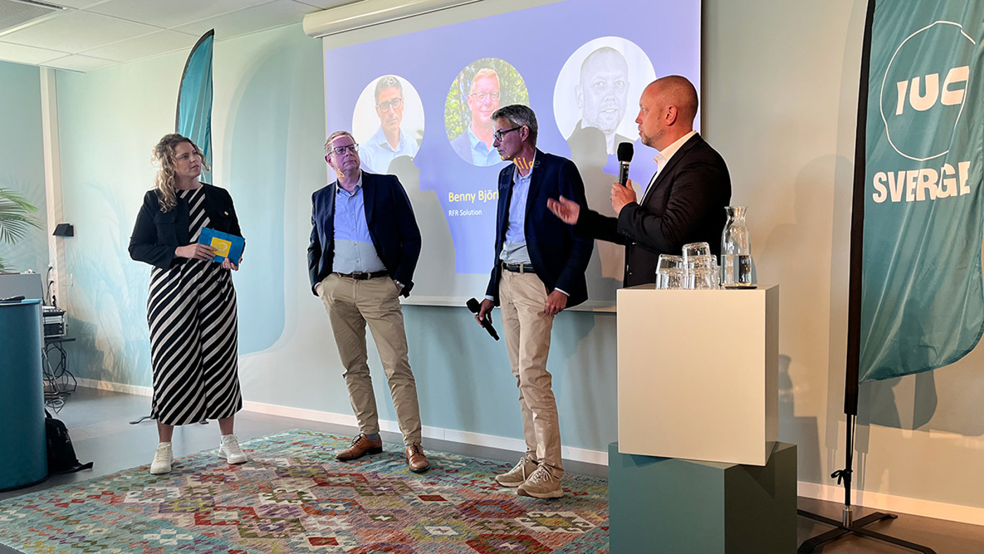 The panel was moderated by Amelie Hallin, with Catarina Sahlberg and Frida Tibblin Citron from Big Science Sweden. Speakers included Per Woxenius (Freemelt), Benny Björkander (RFR Solutions), and Lars Milde (Brokk).