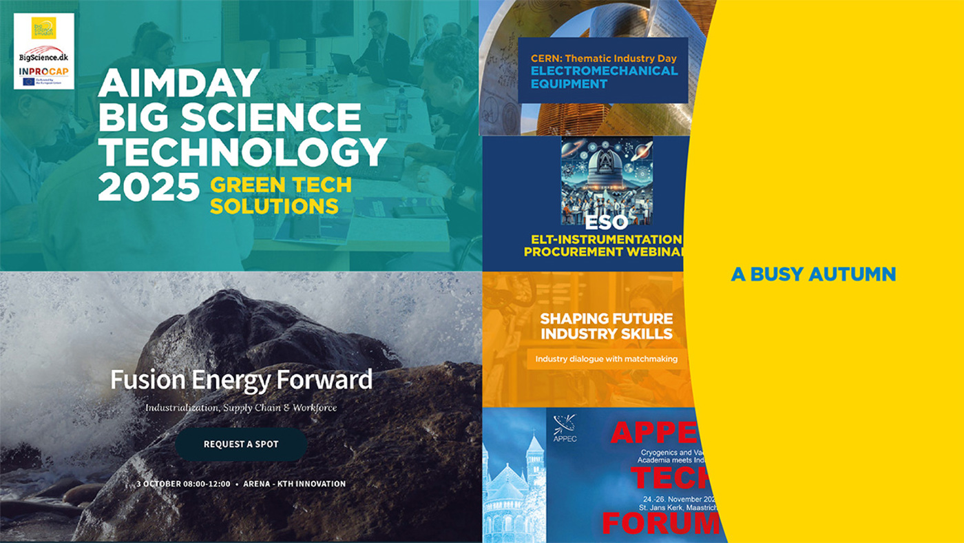- 15 October – CERN Thematic Industrial Event. Electromechanical Power Supply Equipment. Insights into upcoming projects and use cases, plus opportunities to book B2B meetings with CERN and with other suppliers.