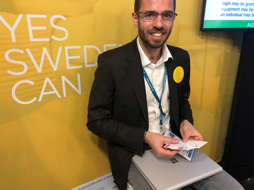 I svenska montern fick vi besök av Benjamin Perier, Market Intelligence Officer på Fusion for energy, F4E som liksom många andra är på jakt efter kvalificerade leverantörer bland annat av boron carbide blocks.